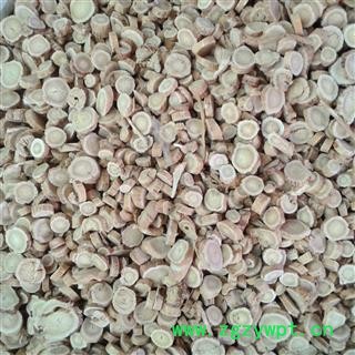 [性 状]:本品黄芪直根圆柱形、有的有分枝,上端较粗,长30~90厘米,直径1~3.5厘米,表面纵皱色淡棕黄色或淡棕褐色,有不整齐的纵皱纹或纵沟质,硬而韧有粉性,皮部黄白较疏松;木部菊花纹理状,气似豆腥味微甜。老根中心偶有枯朽状,黑褐色或呈空洞。气微,味微甜,嚼之微有豆腥味。