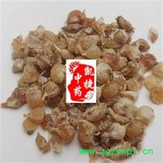 [性 状]:该品干燥鳞茎,呈不规则的卵圆形,大小不一,长1~1.5厘米,直径0.8~1.8厘米,上部有茎痕;表面黄白色或淡黄棕色,半透明,有纵沟与皱纹,或有数层膜质鳞片包被,揉之易脱。质坚硬,角质,不易破碎,断面黄白色。有蒜臭,味微辣。以个大、质坚、饱满、黄白色、半透明、不带花茎者为佳。主产东北、河北、江苏、湖北等地。