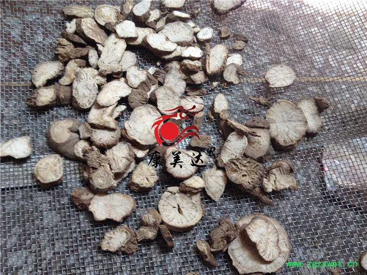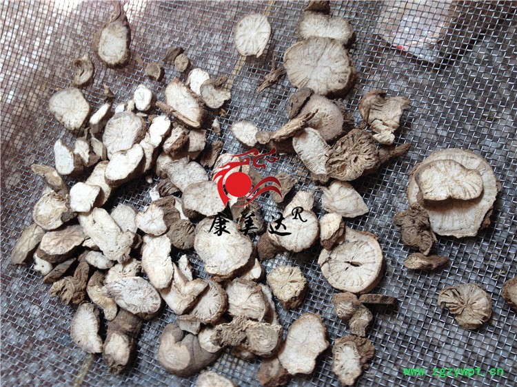 [性 状]:该品根不规则圆柱形,或剖切成半圆柱形或块状,常弯曲,弯曲处有深陷横沟而呈结节状,长5~15cm,直径1~5cm。表面灰黄色,有细皱纹及横向突起的皮孔。质坚重,断面平坦,灰白色,粉性。气微,味苦。