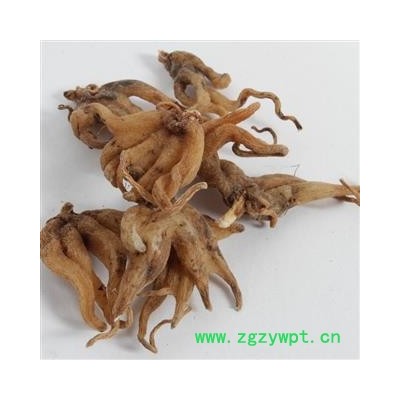 药材性状:手参块茎稍扁,形如手掌,长1-4.5cm,直径1-3cm,表面浅黄色或暗棕色,有细横皱纹,顶端有茎残基,其周围有点状根痕;下部有4-12指状分枝,分枝长0.3-2.5cm,直径2-8mm。质坚硬,不易折断,断面黄白色,角质样。气微,味淡,嚼之发粘。