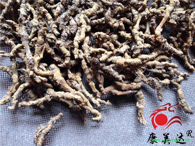 [性 状]:该品鸡爪连有碎渣及粉末状,味极苦,药材多数聚集成簇,常常弯曲,形如鸡爪,习称“鸡爪连”,其单枝根茎长3-6厘米,直径0.3-0.8厘米。表面粗糙,有不规则结节状隆起,有须根及须根 残基。节间表面平滑如茎杆,习称“过桥”。其上部多残留褐色鳞叶,顶端常留有残余的茎或叶柄。表面灰黄色或黄褐色。质硬,断面不整齐,皮部橙红色或暗棕色,木部鲜黄色或橙黄色,呈放射状排列,髓部有时中空。气微,味极其苦。