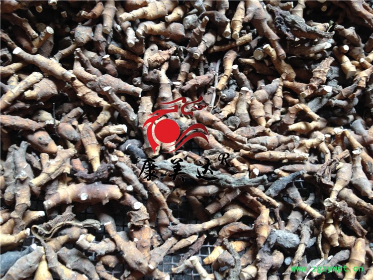 [性     状]:该品 根茎长纺锤形,稍弯曲,长1-4cm,直径3-5mm。表面棕黄色至暗棕色,具多数半环状突起的节,其上有鳞叶痕,斜向交互排列,节上有1-3个突起的根痕。质硬脆,易折断,断面平坦,色白,有粉性,可见淡黄色小点(维管束)6-12个,排列成环。气微,味微酸。