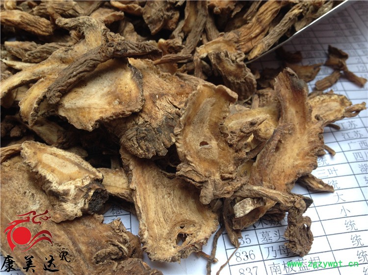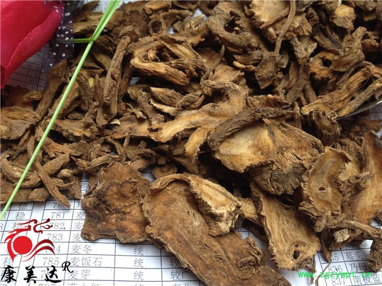 [性 状]:根头及主根粗短,略呈圆柱形,长,长1.5-4cm,直径1.5-3.5cm, 下部有数条弯曲的支根,长12-30cm,直径0.5-1.5cm。表面粗糙,灰棕色,具不规则纵皱纹及横裂纹,并有多数横长皮孔及细根痕;根头部有环纹,具多殖环状叶柄痕,中内为凹陷的茎痕。质坚硬,断面灰黄白色,形成层环棕色,皮部有棕色油点(油管),木部黄棕色;根头横断面有大形贿部,亦有油点。香气特异,味苦辛,微麻舌,以条粗壮、油润、香气浓者为佳。
