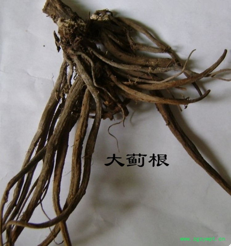 性状 :呈长纺锤形,常簇生而扭曲,长5~15cm,直径0.2~0.6cm。表面暗褐色,有不规则的纵皱纹。质硬而脆,易折断,断面粗糙,灰白色。气微,味甘、微苦。