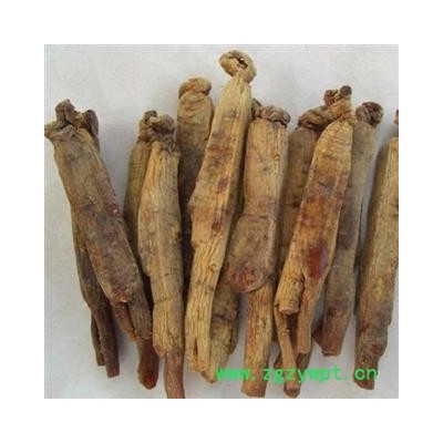 [性     状]:该品呈长柱状,上半部均压制成不规则的方柱形,长7-16cm,直径1-2cm;表面红棕色至深红棕色,有光泽,略透明,皮细腻显油润;根茎(参芦)短而粗凹窝状,有的具两个参芦,参芦的茎痕(芦碗)大,略似碗状;根的上部有横环纹。中下部有纵皱和少数浅纵沟,底端下部支根(参腿)1-3支,稀有4支,较粗;质坚重,不易折断,断面较平坦,红棕色,有光泽,呈角质,形成层色淡;气香特异,味微苦后甘甜。