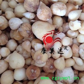 性状:干燥的鳞茎,呈卵圆形或圆锥形,高约0.7~1.5厘米,直径约0.5~1厘米。底部圆而凹陷,有根痕,上端急尖,一侧有纵沟自基部伸向顶端。表面黄白色,光滑。质硬而脆,横断面黄白色,粉质。五香气,味淡。以色白、体质饱满者为佳。