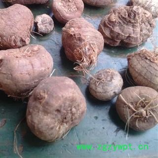 [性 状]:大小不均匀黄棕色或棕褐色,圆球状,止痉1-2cm。顶端渐突起,有茎痕,基部脐状,有须根有纵皱纹,膨大部有2-3条微突起的环节,质坚硬,断面灰白色或黄白色