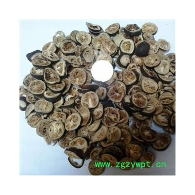 性状:呈不规则的圆球形,部分被横剖为两瓣,直径0.3-2cm。外表面深灰色或黑绿色,有细皱纹及小瘤状突起,可见细密小凹点(油室),顶端有稍突起的花柱残基,基部有圆形的果柄痕。质坚硬,横剖面果皮黄白色或淡黄棕色,厚0.15-0.4cm,中央有瓤囊7-13瓣,干缩成片状,气清香,味苦辛。以个匀、质硬、体重、肉厚、瓤小、香气浓者为佳