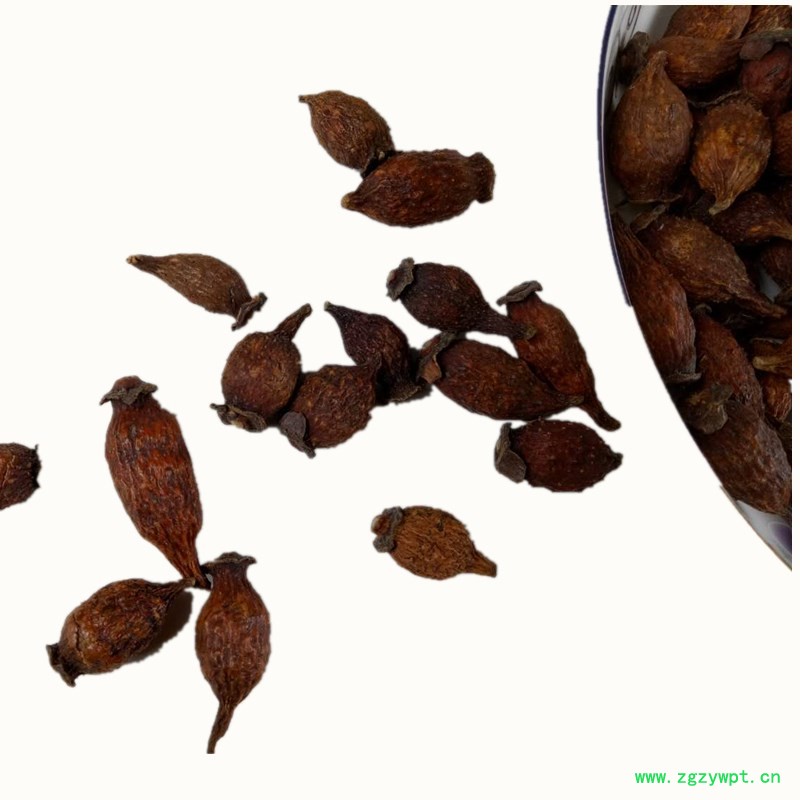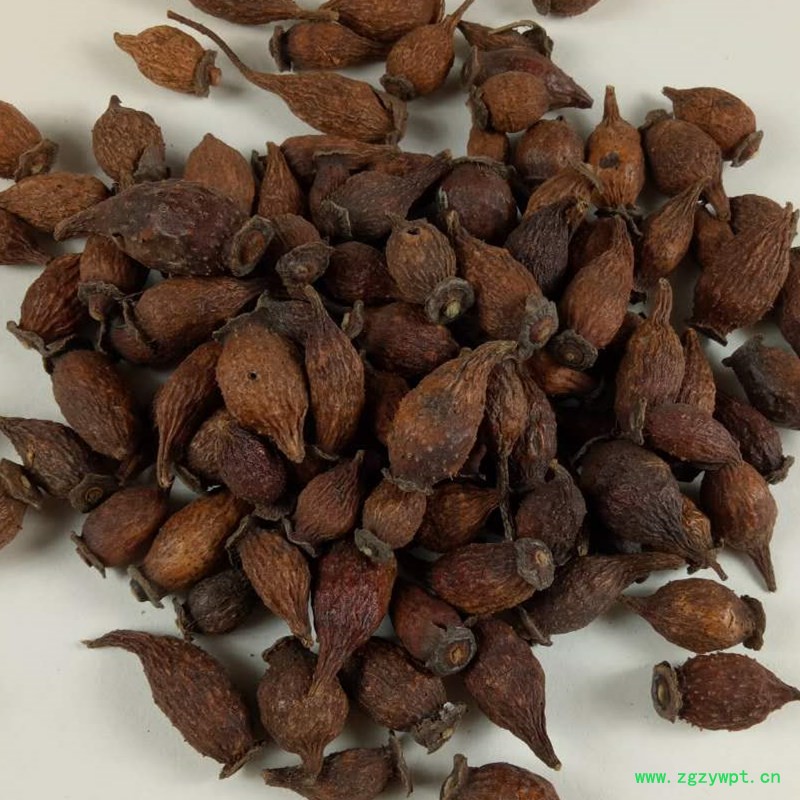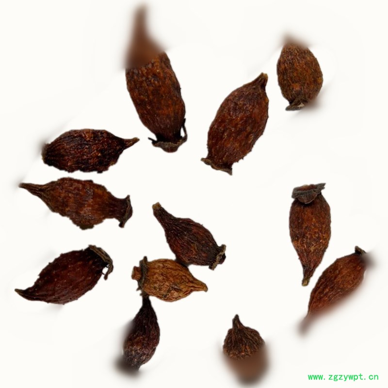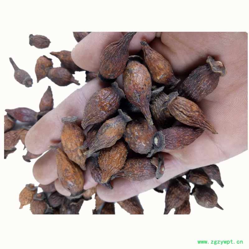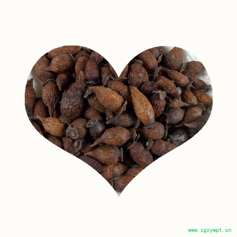 【药材性状】倒卵形,长2~3.5厘米,直径1~1.8厘米。表面黄红色至棕红色,略有光泽,上有多数刺状刚毛脱落后残基形成的棕色小突起;顶端宿存花萼呈盘状,其中央稍隆起有黄色花柱基;基部渐细,间有残留果梗。质坚硬,切开后可见花萼筒壁厚1~2毫米,内壁密生淡黄色有光泽的茸毛,瘦果数十粒,扁平,纺锤状排列,长约7毫米,淡黄棕色,木质坚硬,外被淡黄色茸毛。气微,味甘,微涩。