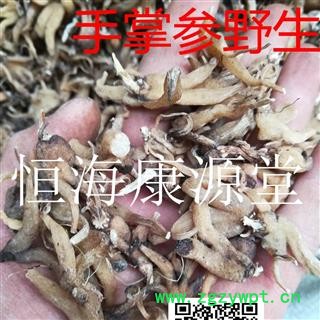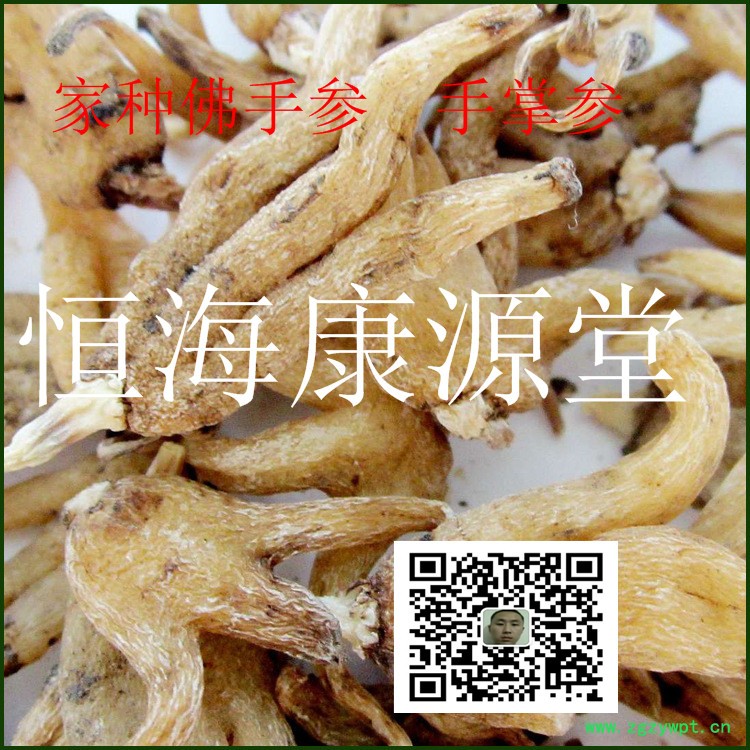 药材性状:手参块茎稍扁,形如手掌,长1-4.5cm,直径1-3cm,表面浅黄色或暗棕色,有细横皱纹,顶端有茎残基,其周围有点状根痕;下部有4-12指状分枝,分枝长0.3-2.5cm,直径2-8mm。质坚硬,不易折断,断面黄白色,角质样。气微,味淡,嚼之发粘。