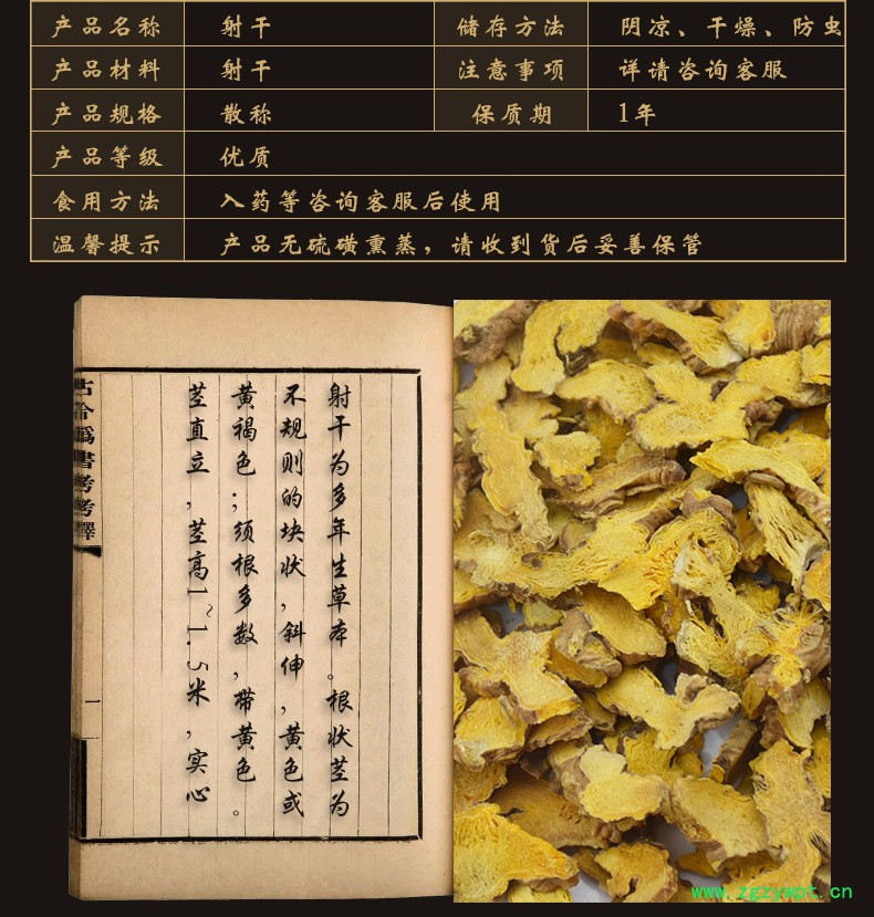 规格等级:01 湖南射干 统