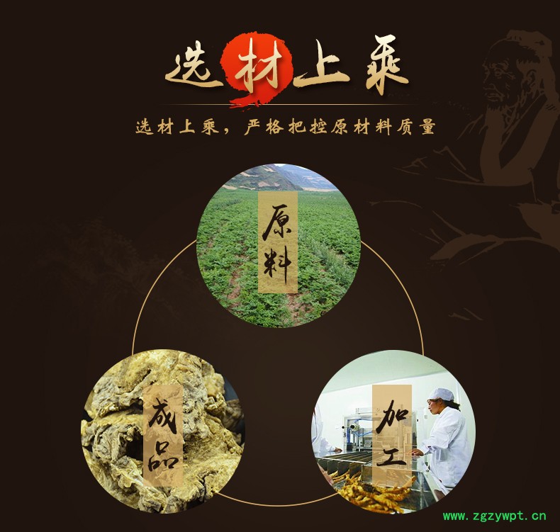 华珍品 本着"地道药材、源于自然、造福人民"的宗旨,严格执行中药材管理规范,以确保中药材质量。