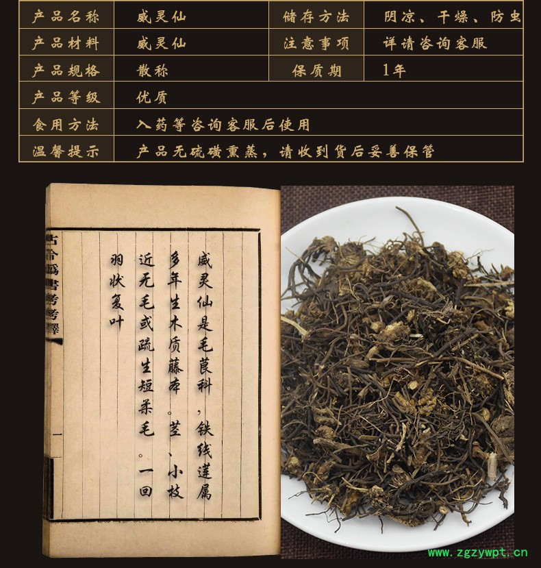 规格等级:01 威灵仙 统