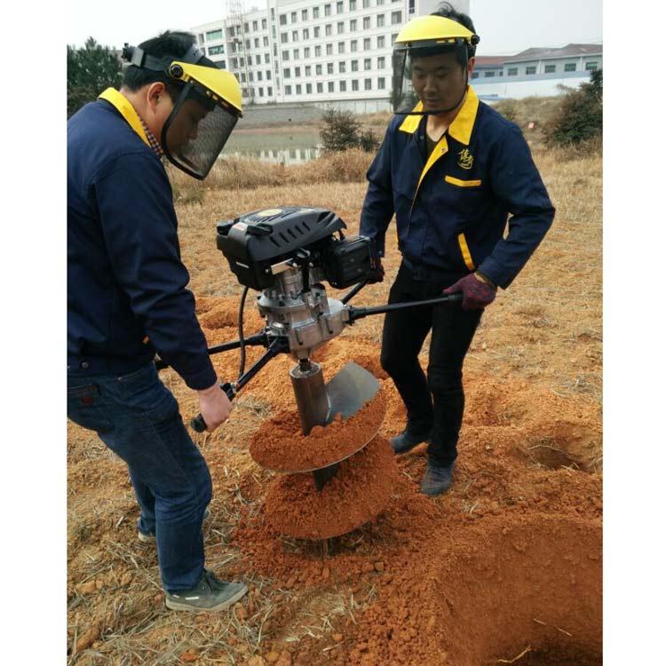 挖坑机细节展示:1、大绳轮易启动:拉动顺畅,自动弹钢片弹簧,启动快。2、空气滤清器:防止灰尘,动力更持久。3、合金齿轮箱:密封性高,耐用耐磨,可添加黄油。4、半透明油箱:剩余油量可观,燃油配比25:1。5、加速开关:使用灵活方便,加速开关+熄火开关。6、透明油泡**输油管+化油器。注意:加油时请按照比列添加汽油机油!!