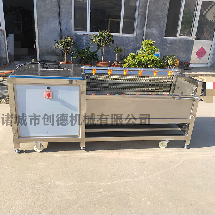 诸城创德机械专业生产蔬菜清洗机、水果清洗机、清洗流水线,设备效率高、性能稳定。毛辊清洗机自动连续清洗、自动出料,清洗效率高,省水率高至70%。广泛应用于蔬菜、水果、贝类海鲜的清洗:土豆、胡萝卜、芋头、甘薯、地瓜、大姜、苹果、桔子、元葱、山药、大枣、蛤蜊、扇贝、海虹、海螺等产品。