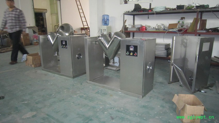 V型混合机又称不对称混合机或二维混合机,它是通过电机带动减速机、转轴,转轴连接V型料筒,料筒通过转轴做圆形运动,从而带动料筒内的物料在桶内上、下、左、右运动,从而使物料混合。该机主要由不锈钢制造,符合GMP标准,适用于医药、食品、工业等多行业流动性较好的干性粉或颗粒状物料的混和。本机结构合理,操作简单,进出料方便,便于清洗,实用性较高。