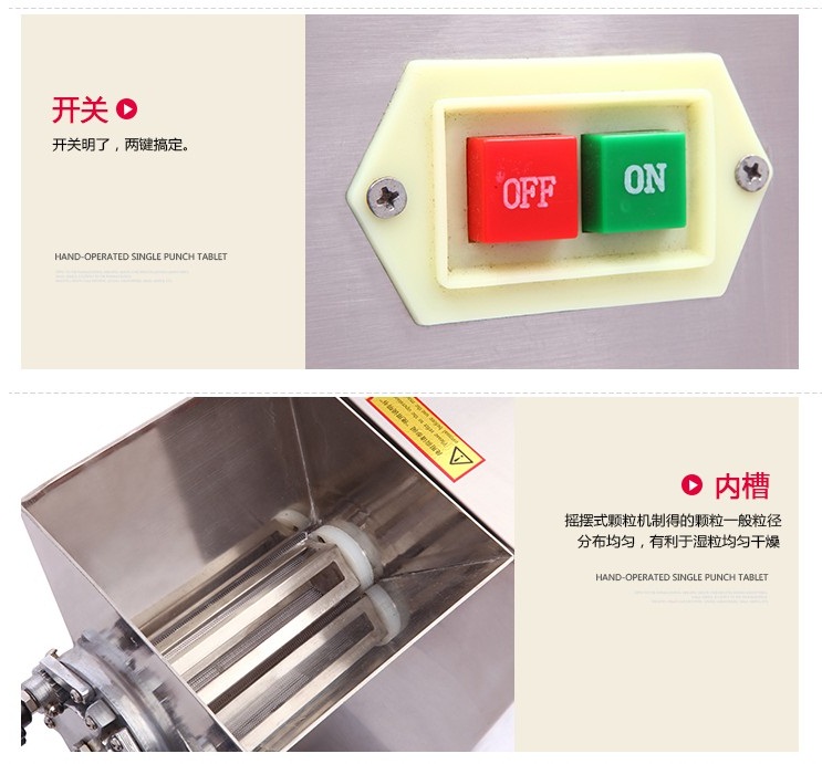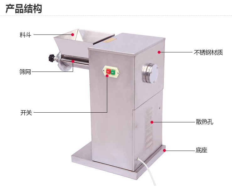 摇摆式制粒机整机外壳采用不锈钢,主要由电机、减速机、造粒装置等组成,该机结构精密,操作简单,通过更换不同目数的筛网可以将湿性粉末制成不同大小的颗粒,也可对一些条状及不规则状的易碎、易松散、较脆物料进行打碎打散,具有制粒、粉碎、布料三种功能,可一机多用。本机可广泛适用于制药、化工、食品、陶瓷等行业制粒等需要。