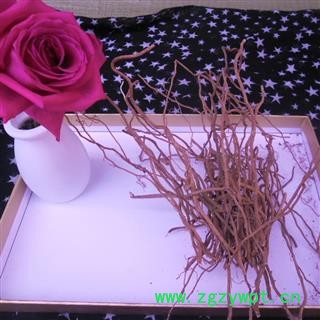 商品性状:臭梧桐根均切段,长1-1.5厘米,直径0.5厘米左右。有很多根须.。皮为土棕色略带白色小点。心为白色。枝干为空心。