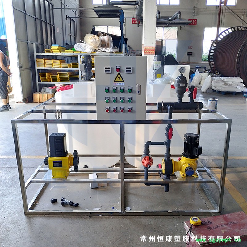 恒康塑胶 pe加药箱 采用滚塑工艺一体成型。PE材质,不易渗漏、重量轻、抗老化、抗冲击、耐腐蚀、寿命长、符合卫生标准等特性。