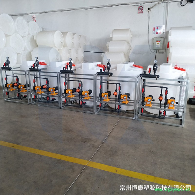 加药装置是一种具投药、搅拌、输送液体、自动控制与一体的成套设备。加药装置具有结构紧凑、简单、操作使用简便等特点。