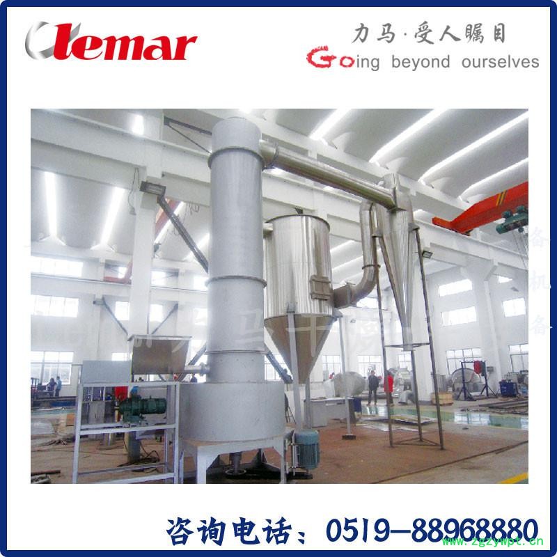 在旋转闪蒸干燥机中固体颗粒随高速气流沿壁面呈剧烈的旋转运动,且在干燥机底部有高速旋转的破碎装置,而湿物料颗粒为细晶的聚集体,在干燥过程中易分散成细粉,因此可以直接得到粉状产品,而无需进一步粉碎。
