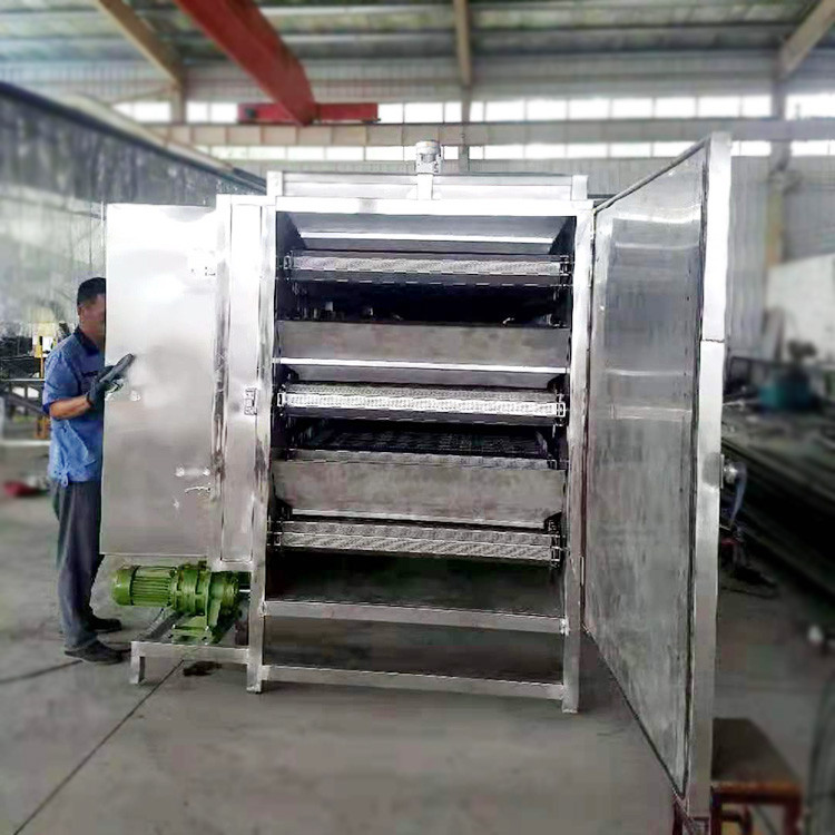 网带烘干机是一种由电加热、蒸汽加热、热风加热进行加热的批量、连续式生产利用钢网作为传输带运载物料进行连续烘干的干燥设备。