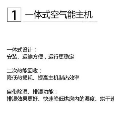4、排湿排水系统:将烘房的湿热的空气大部分冷凝变成水排出,多余的水汽通过风机排出。5、全自动控制系统:按照合适的烘干工艺曲线,自动调节温度和湿度、烘干时间。
