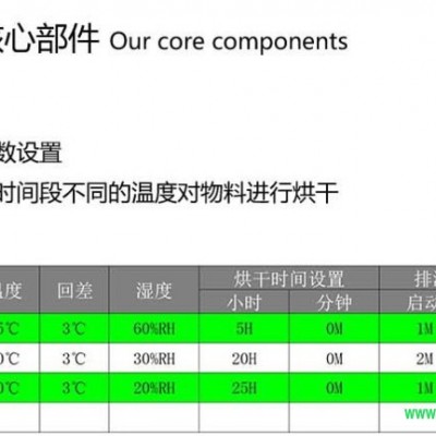 6、温湿度智能控制装置。 触摸屏控制面板,可灵活设置多个个不同时段参数,满足各种物料烘干工艺。