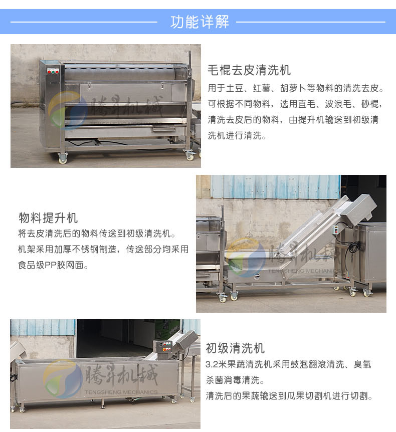 我公司可根据顾客要求,订做各种蔬果分拣、清洗、切割、风干生产线
