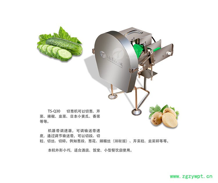 切葱机是一款皮带输送的切割机,本机外形小巧精美,结构新颖,皮带输送的设计,可以切葱、芹菜、辣椒、韭菜、日本小黄瓜、香菜等等,机器带调速器,可调输送带速度,当输送带调快,切出来的材料**长,输送带调慢,切出来的材料**短。通过调节输送带,可以切段、切粒、切丝、切碎。例如葱段、葱花、辣椒丝(辣椒圈)、芹菜粒、韭菜碎等等。本机操作简单,清洗方便,性能稳定,安全可靠。适合餐饮行业,单食堂,食品加工厂等单位使用。