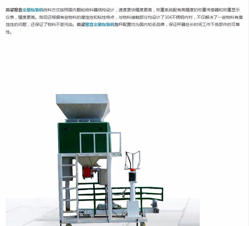 ②肥料类:饲料颗粒、有机肥、复合肥、大颗粒、BB肥、猪饲料、牛饲料等各种混配肥饲料、油脂、大米、制糖、食品、化工等行业颗粒状物料的定量包装。