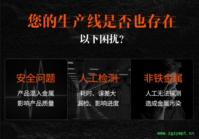 联系电话:186-6410-1787 始于行业 食品、药品、玩具、服装、制鞋、化工皮革、针织、纸制品等行业检测产品或原料在生产加工过程中混入的金属杂质。