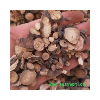【性状】本品呈圆柱形,稍弯曲,长5~40cm,直径0.5~3cm。表面棕褐色,粗糙,有纵沟和皱纹,并有须根痕和横长的皮孔样突起,有的外皮易脱落。质硬而脆,易折断,断面粉白色或粉红色,皮部窄,木部放射状纹理明显,有的有裂隙。气微香,味微苦、酸涩。