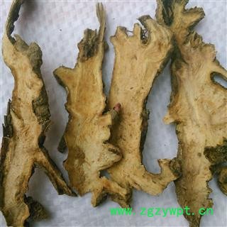 【性状】本品呈圆柱形,稍弯曲,长5~40cm,直径0.5~3cm。表面棕褐色,粗糙,有纵沟和皱纹,并有须根痕和横长的皮孔样突起,有的外皮易脱落。质硬而脆,易折断,断面粉白色或粉红色,皮部窄,木部放射状纹理明显,有的有裂隙。气微香,味微苦、酸涩。
