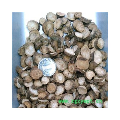 【性状】本品呈圆柱形,稍弯曲,长5~40cm,直径0.5~3cm。表面棕褐色,粗糙,有纵沟和皱纹,并有须根痕和横长的皮孔样突起,有的外皮易脱落。质硬而脆,易折断,断面粉白色或粉红色,皮部窄,木部放射状纹理明显,有的有裂隙。气微香,味微苦、酸涩。