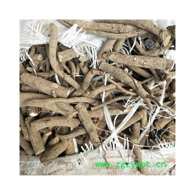 【性状】本品呈圆柱形,稍弯曲,长5~40cm,直径0.5~3cm。表面棕褐色,粗糙,有纵沟和皱纹,并有须根痕和横长的皮孔样突起,有的外皮易脱落。质硬而脆,易折断,断面粉白色或粉红色,皮部窄,木部放射状纹理明显,有的有裂隙。气微香,味微苦、酸涩。