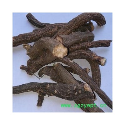 【性状】本品呈圆柱形,稍弯曲,长5~40cm,直径0.5~3cm。表面棕褐色,粗糙,有纵沟和皱纹,并有须根痕和横长的皮孔样突起,有的外皮易脱落。质硬而脆,易折断,断面粉白色或粉红色,皮部窄,木部放射状纹理明显,有的有裂隙。气微香,味微苦、酸涩。