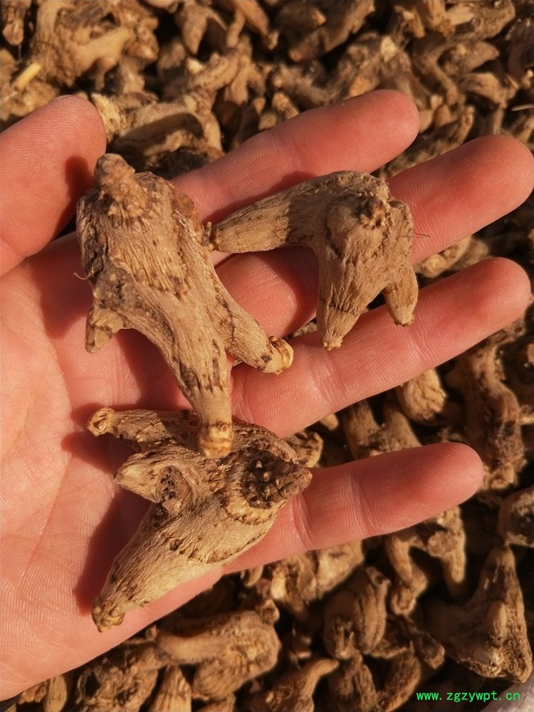 性状颜色:块茎掌状扁平,2—3分岔,呈鹰爪状或菱角形。长1.5—4CM,厚0.5—1CM。表面黄白色或灰白色,有细皱纹,上面有凸起的茎痕,下面有连接另一块茎的茎痕,以茎痕为中心,周围有数圈棕褐色同心环纹,环上常残留毛须及根痕。质坚硬,不易折断,断面类白色,呈半透明角质样,可见多数散在维管束点。气无,味苦,嚼之有黏性。