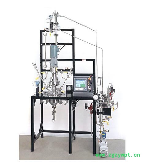 | 药品反应器/搅拌器,带玻璃中间体釜、自动填充控制、数据记录器和冷却系统。 |