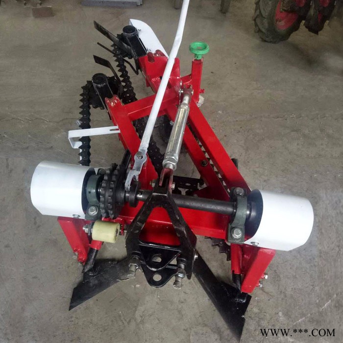 花生收获机性能好,适应性广,操作简便,将机具下悬挂壁销轴插入手扶机悬挂臂孔中,销好销锁,机具上悬挂臂与拖拉机中央拉杆链接,可以通过旋转中央拉杆以调整机具深浅,分合变速箱固家到拖拉机的输出轴上,机具变速箱与分合变速箱以拐臂连接。 手扶花生条铺机