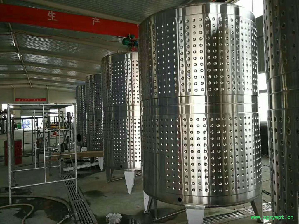 储罐结构特征: 圆柱形结构、储罐形式有平底罐和斜底罐等、结构设计非常具有人性化,操作性强、罐内全部采用圆弧过渡形式进行焊接,无卫生死角、采用先进的水焊法进行焊接,外观美观、整洁、无搅拌或带搅拌,搅拌形式有侧搅拌或顶部搅拌等形式。