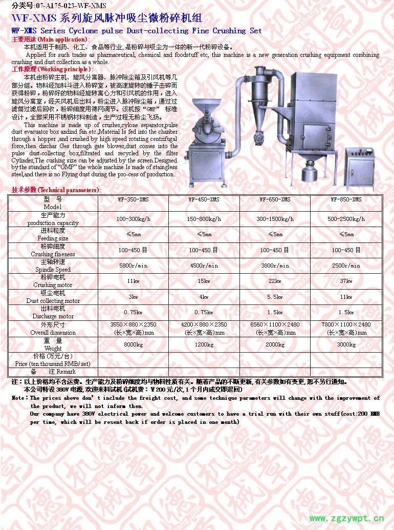WF-XMS Series Cyclone pulse Dust-collecting Fine Crushing Set