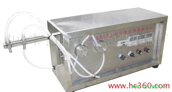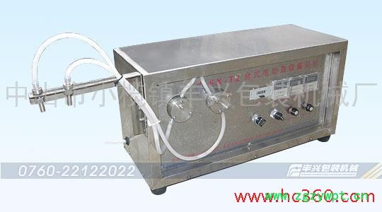 1全不锈钢; 2双管; 3灌装范围从0毫升到350毫升,计量精度±0.5%; 4灌装速度、间隔时间均可调; 5主要用于洗涤液、糖浆、果汁、食用油、乳剂、农药等所有溶液、粘液、乳液的定量灌装; 6本机特别对于一定粘度的液体而灌装容器又是千变万化、生产规模一般,但相应品种繁多的灌装工艺显得十分优越。