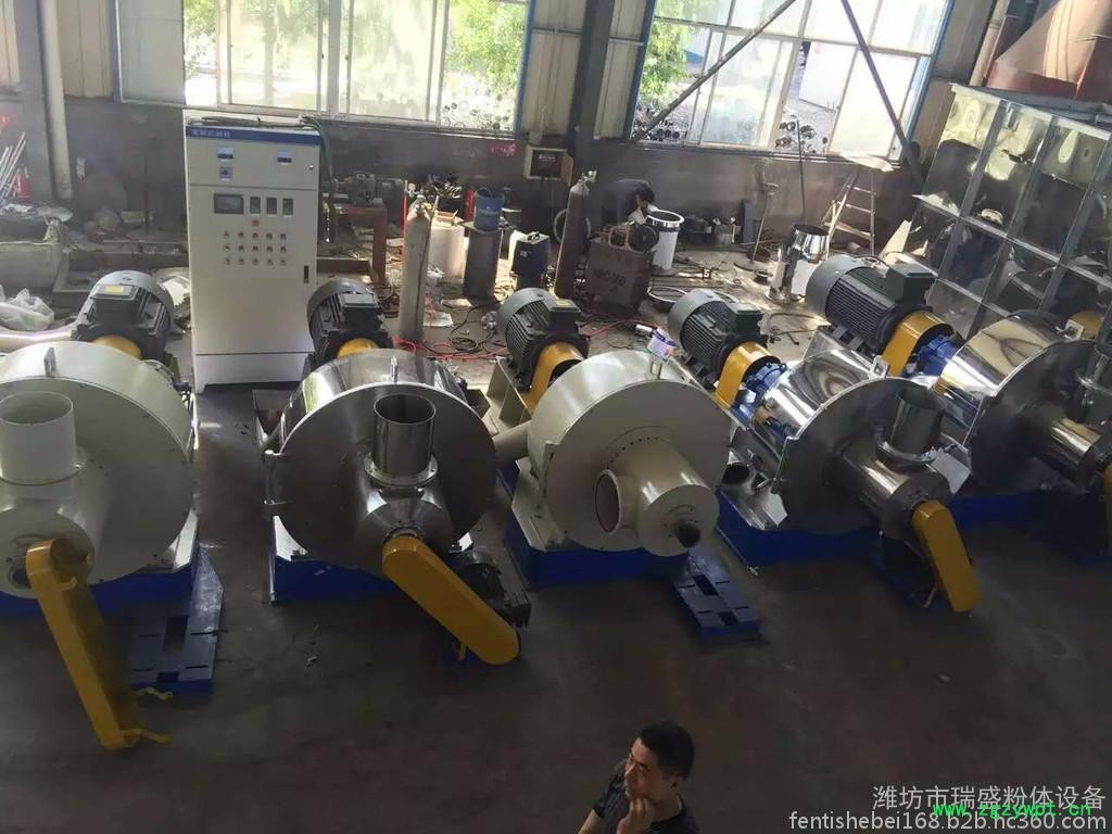 2、该设备采纳国内外干法机械粉碎机的特长,根据需要可采用大风量入腔或水夹套冷却,以降低粉碎热量,防止物料颗粒粘壁、粘粉碎盘面的弊病。。