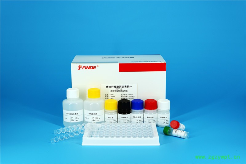 猪流行性腹泻病毒抗体检测试剂盒由预包被猪流行性腹泻病毒(PEDV)抗原的微孔板和酶标记抗原及其他配套试剂组成,应用双抗原夹心酶联免疫法(ELISA)原理检测猪血清、血浆及相关液体样本中流行性腹泻病毒抗体。实验时,在包被板中加入对照血清和待检样本,经温育后,若样品中含有猪流行性腹泻病毒抗体,则将与包被板上抗原结合,经洗涤除去未结合的其他成分后;再加入酶标抗原,与包被板上抗原抗体复合物发生特异性结合;再经洗涤除去未结合的酶结合物,在孔中加TMB底物液,与酶反应形成蓝色产物,显色深浅与样品中的特异性抗体含量成正相关;加入终止液终止反应后,产物变为黄色;用**在450nm波长测定各反应孔中的吸光值,即可知样品是否含有猪流行性腹泻病毒抗体。适合范围: