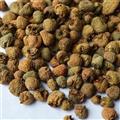 *性状: 本品为聚合果,由多数小核果聚合而成,呈圆锥形或扁圆锥形,高0.6~1.3cm,直径0.5~1.2cm。表面黄绿色或淡棕色,顶端钝圆,基部中心凹入。宿萼棕褐色,下有果梗痕。小果易剥落,每个小果呈半月形,背面密被灰白色茸毛,两侧有明显的网纹,腹部有突起的棱线。体轻,质硬。气微,味微酸涩。