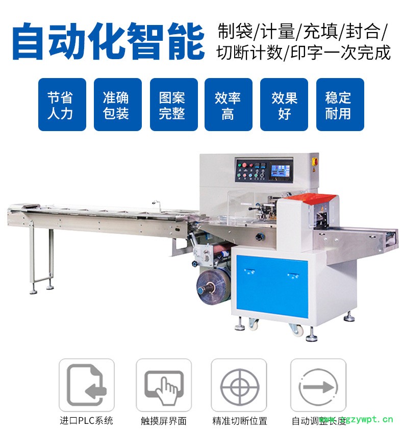 1.双变频器控制,袋长即设即切,无需调节空走,一步到位,省时省膜。
