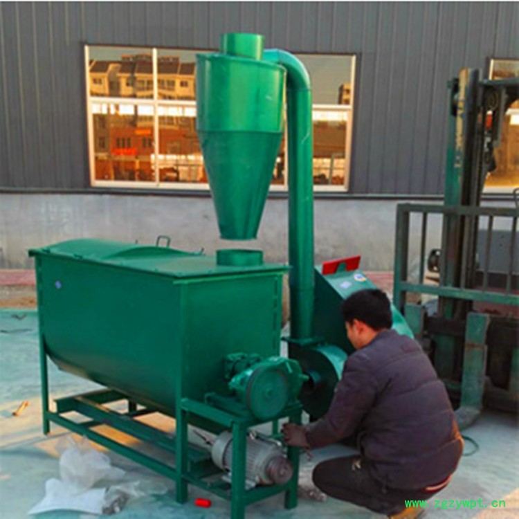 粉碎搅拌一体机是由自吸式粉碎机将物料粉碎后在搅拌的组合机,本机具有粉碎饲料在搅拌混合的功能,实现了一机多用的组合机。