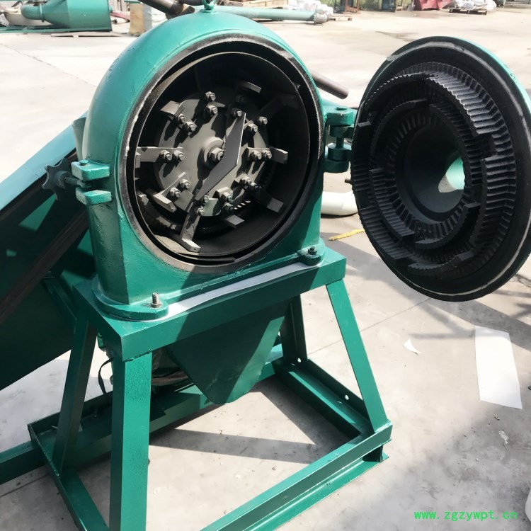9FC系列粉碎机,本产品都备有自动上料、风机和卸料装置,大大降低了操作者的劳动强度。本品主要适应大型化工厂、药厂、味精厂、饲料厂、石膏厂、金属钙厂、造纸厂、豆泊厂、酒厂等行业的使用。本产品具有产量高、用电少、工作平稳、安全可靠、装卸方便等优点。 用本机加工玉米、高粱、薯干、豆饼等各种杂粮和饲料特别理想,将原粮放入本机内,在转速下不留渣全部成粉。本机还能粉碎多种化工原料,造纸打浆,中草药加工和石膏粉、鱼骨粉、金属钙的加工。 本系列粉碎机有不同规格,可自吸上料的,柴油机可以带动的,立式进料口的,斜式进料口的,沙克龙除尘型等您选购. 粉碎机利用活动齿盘和固定齿盘见的高速相对运动,使被粉碎物经齿冲击,摩擦及物料彼此间冲击等综合作用获得粉碎。本机结构简单、坚固、运转平稳、粉碎效果良好,被粉碎物可直接由主机磨腔中排出、粒度大小通过更换不同孔径的网筛获得.