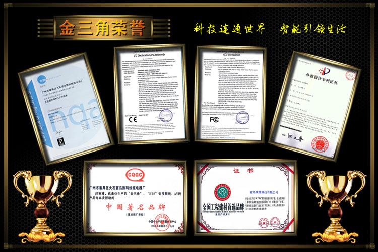 广州市番禺富岛线缆科技有限公司成立于1993年5月,是一家专业生产“金三角”品牌高品质AV线、电脑周边线、VGA线、HDMI线、智能工程安装线、麦克风线的现代化企业,“金三角牌”产品多年来一直处于较高的行业地位,在行业内具有很高的声誉和市场美誉度。公司本着以市场为先导,以**的科技及创新的精神,不断进取,精益求精;技术力量雄厚、生产检测设备齐全、并拥有一批高素质的管理人才、专业工程技术人才。公司已通过了ISO9001:2000版的国际质量认证体系认证。产品已经中国中轻产品质量保障中心认证为“全国产品**、信誉保证放心品牌”、“**合格评定质量信得过好产品”。 欢迎国内外各界人士来电来函,洽谈业务。本厂将竭诚与您携手合作,共创美好未来!